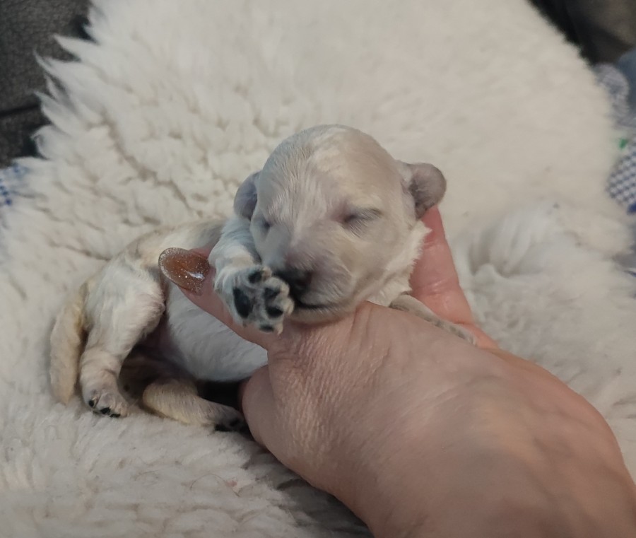 Pikkuin Elsi-tyttö muutti ulkojäseneksi sijoitukseen. Elsi on pitkään odottamastani ensimmäisestä valkoisesta pentueestani.